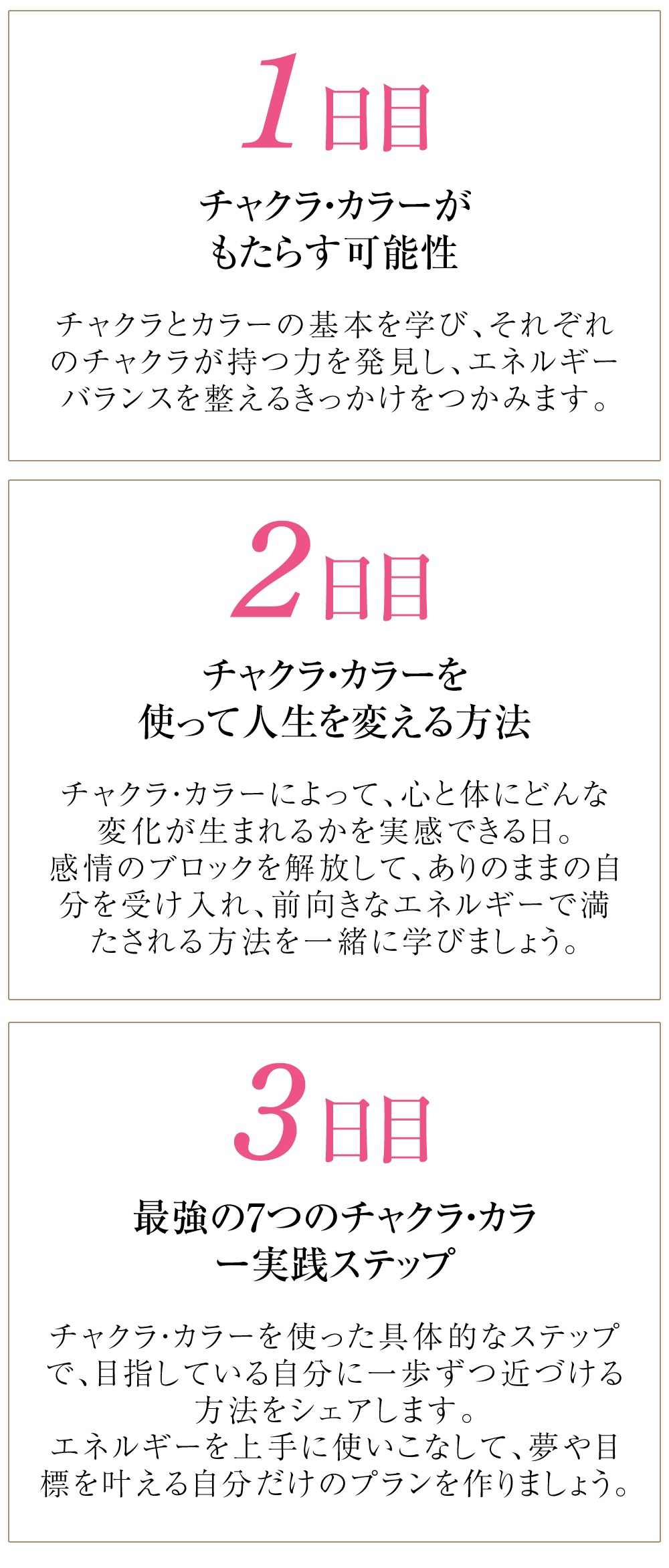 2014年独立するも、全く花開かず、自己啓発にはまる中、好きな色や気になる色は、チャクラに関係していることを知り、チャクラを癒すと、まるで霧が晴れるように人生が好転し始める。