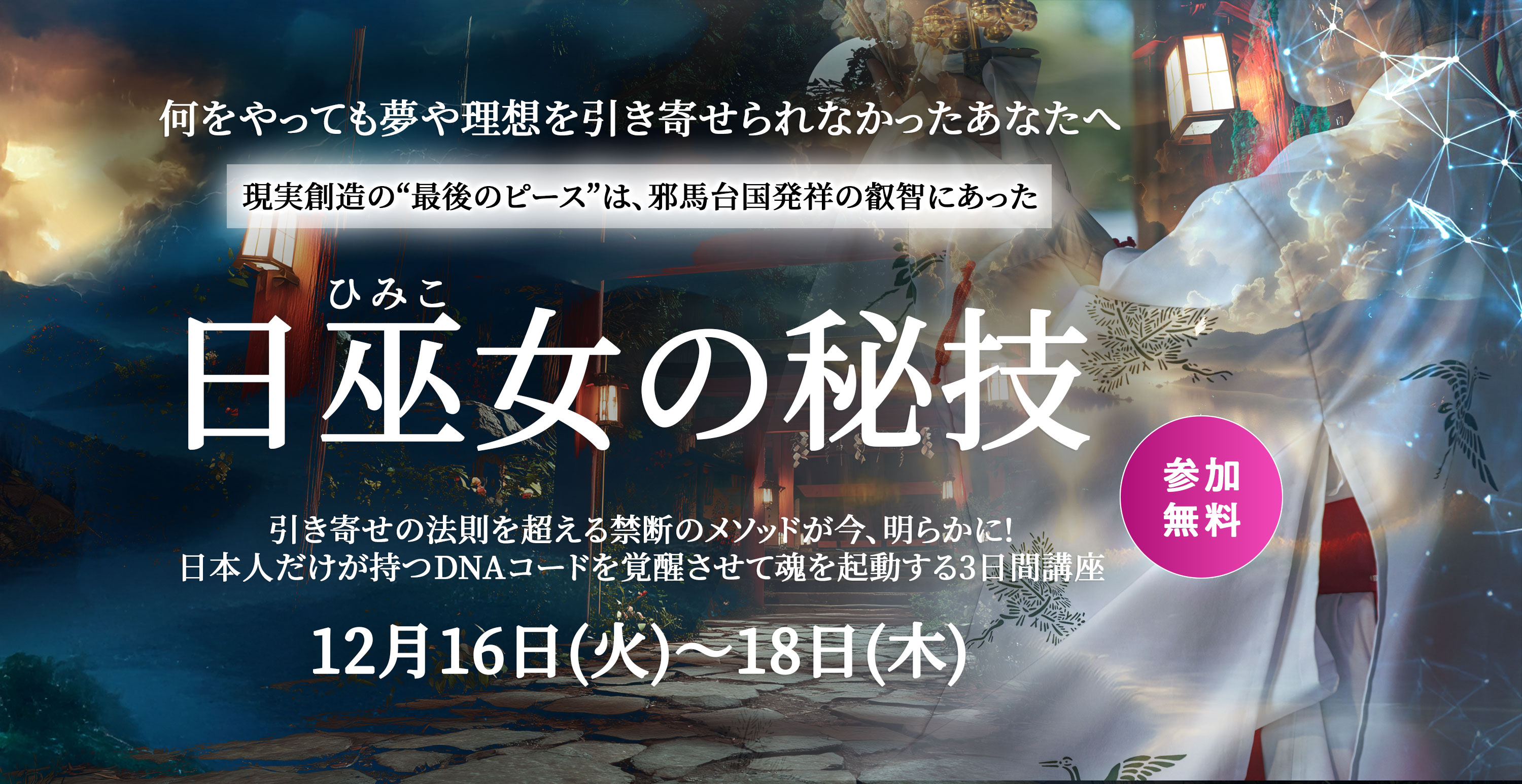 一旦限界の先に追い詰められるという経験の中から、自分自身と徹底的に向き合い出逢ったのが 「日本古来の叡智」──日巫女の秘技でした。