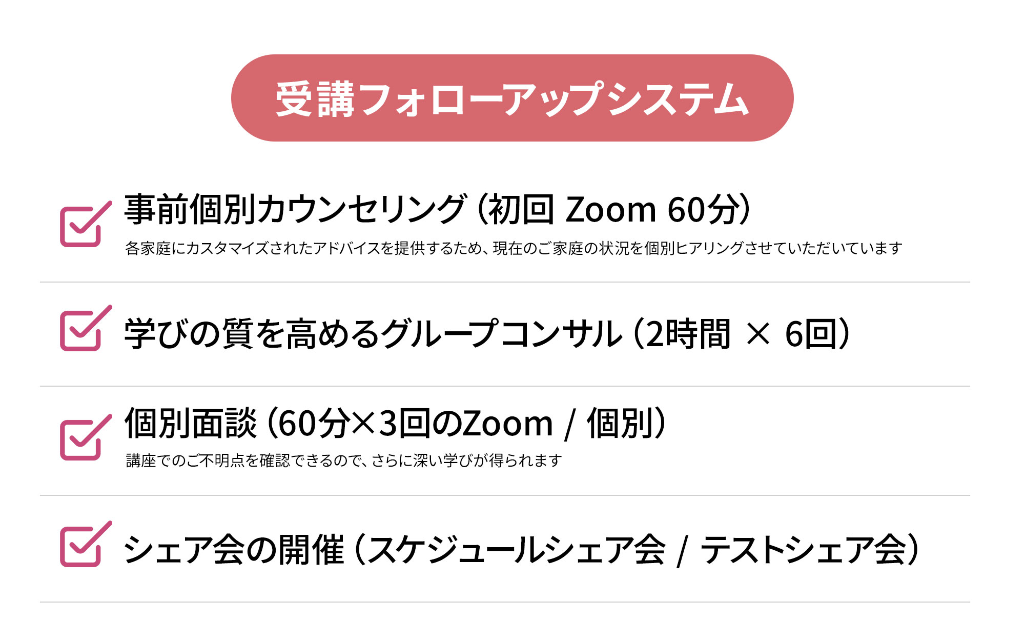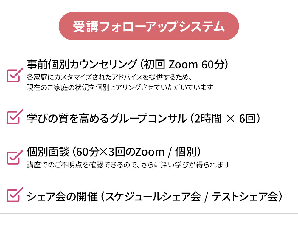 こちらの講座を受講して、まずどこを目指すかに立ち返ることができ、娘も私も落ち着けたように感じました。