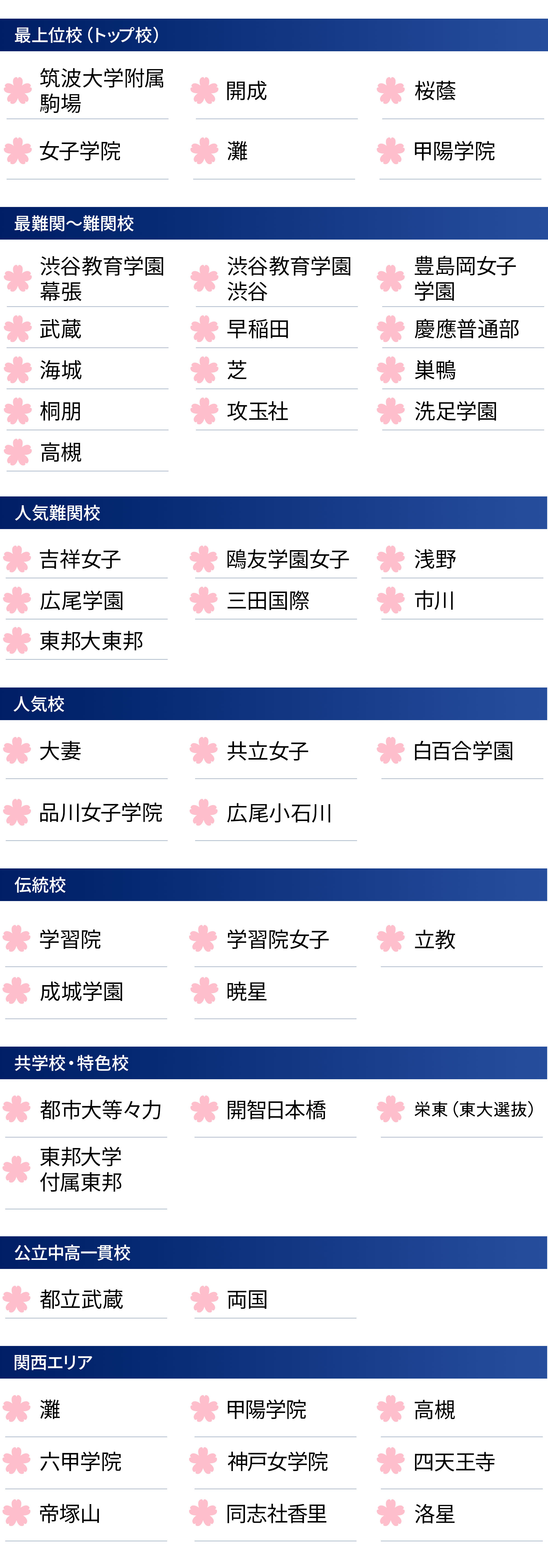 筑駒、開成、女子学院と御三家をはじめ