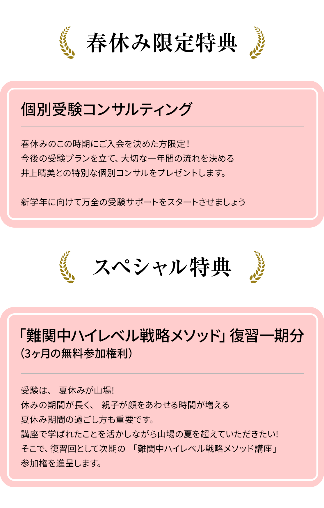 受講者限定の特典もご用意しています