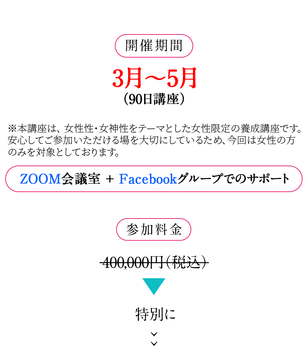 女性でありヒーラーである私自身が、これまでに学んできた膨大な知識や、延べ5000人以上とのヒーリングセッションを通して「女性性開花」をお導きしてきた集大成として、