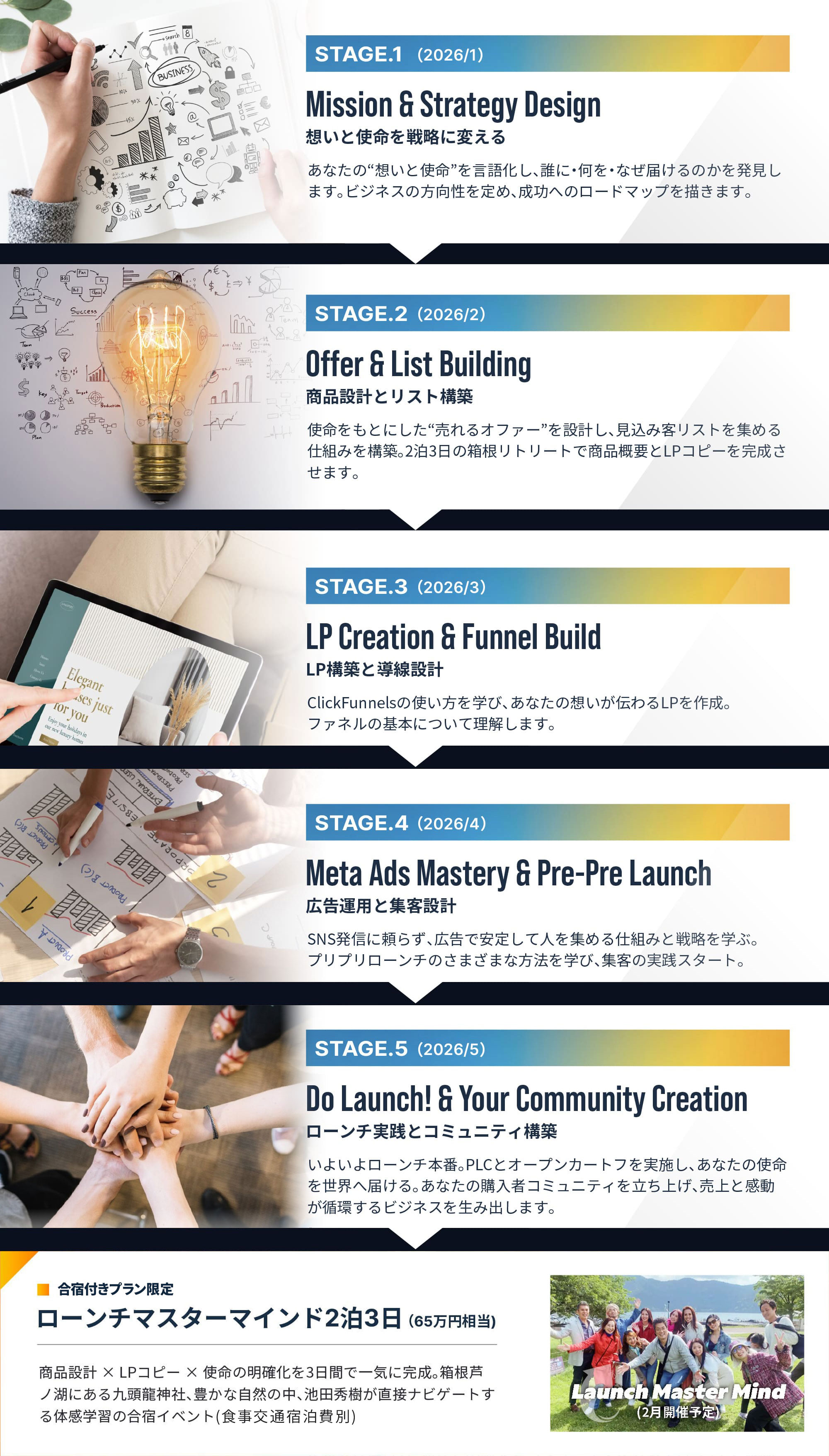 ビジネスを成長に導くマーケティングの手法には数多くの戦略が存在しますが、「ローンチ式」は、長期的な成功をもたらす世界で最も実績のある手法です。この革新的なアプローチは、ジェフ・ウォーカーによって1996年に創出され、数多くの商品やサービス、特に世界で最も売れているiPhoneの販売にも採用されています。世界的なメンターたち、アンソニー・ロビンズ、ブレンドン・バーチャード、ダン・ケネディを含む多くが、この手法をビジネス拡大のために取り入れています。