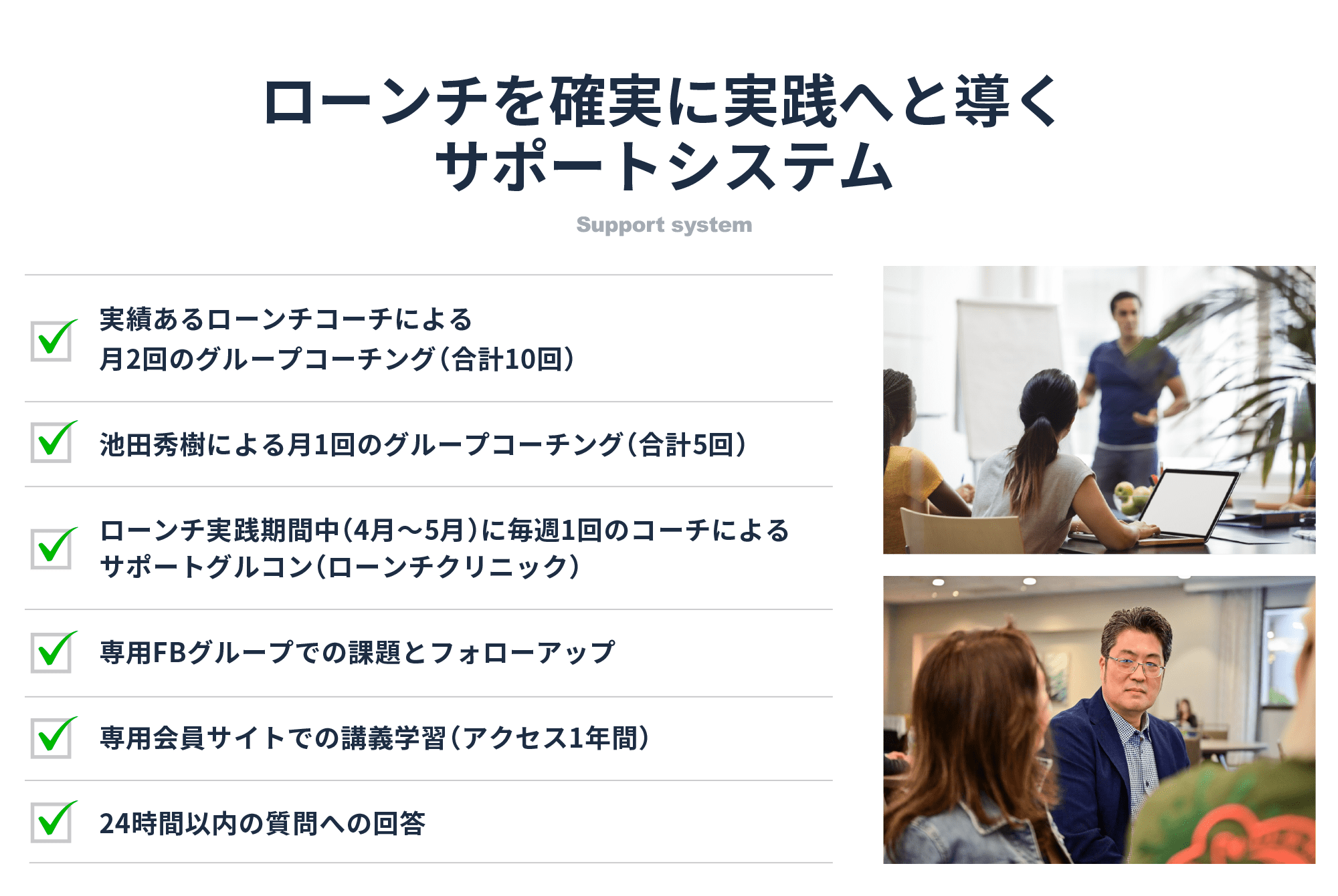 池田先生のところでプロダクトローンチを学んでから、売上はなんと40倍になりました。PCも超苦手で、ビジネスが怖くて夫の後ろに隠れていたような私でも、今では受講生は260名を超え、ローンチの売上も毎回1億円超えが当たり前に。