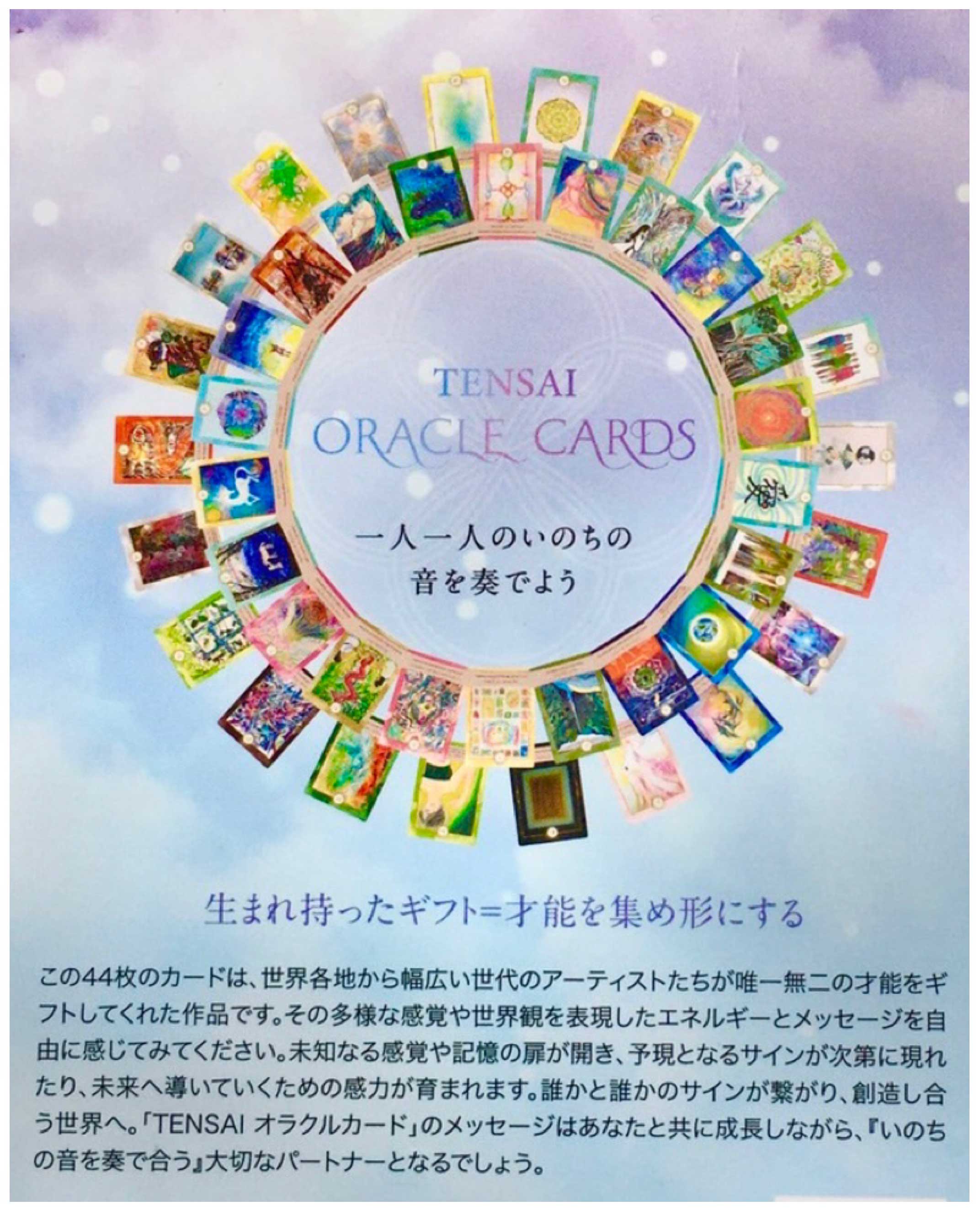 世界各地のアーティストたちが魂のアートで命の輝きを表現し、 44枚のカードとして地球というひとつのいのちを描いています。 Sayuriが一枚一枚にヒーリングエネルギーを込めて制作しており、 カードに触れると、体の内側から温かさや巡りを感じ、 ときには汗ばむほどエネルギーが動くことも。