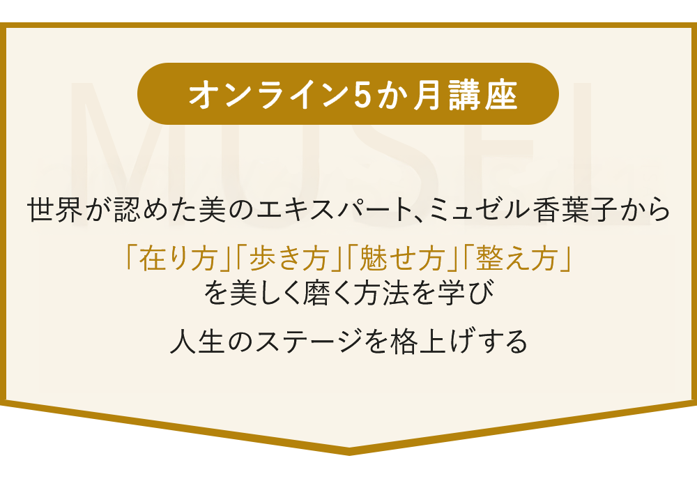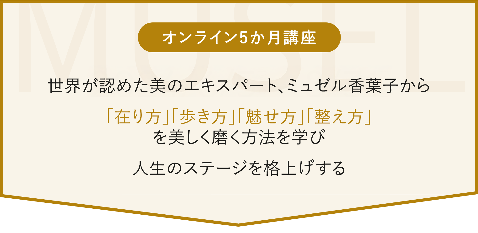 マインド、所作、ウォーキング、瞑想の4つの軸からあなたの人生を引き上げ、最高に輝く自分になるトータルライフレッスンコースがMUSEL LIFESHIFTプログラムです。